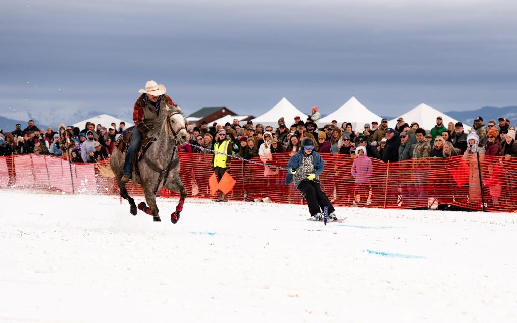 High-speed and high-energy, the annual Whitefish Skijoring competition located in Kalispell pairs skiers with horseback riders for a thrilling race across snow-packed courses filled with jumps and obstacles. Food, drinks and bonfires make this a favorite for spectators, too.